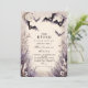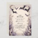 Ponha a palco para uma noite mágica assombrosa com este convite da festa de Halloween. Apresentando morcegos aquosos, luas em crescente, e céus estrelados em roxo e cinza inquietante, esta design traz uma atmosfera assustadora, mas elegante. Perfeito para festas de fantasia, reuniões góticas ou celebrações de outubro com um toque de mistério. Personalize com os detalhes da sua festa e convide os convidados para uma noite que eles não esquecerão.
