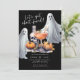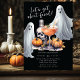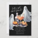 Este convite assustador apresenta um fantasma, abóboras, um cocktail assustador e um crânio. As palavras "Vamos get sheet face" são escritas em uma fonte de script. É a maneira perfeita de convidar seus amigos para uma festa de Halloween onde eles podem vir vestidos com seus trajes e desfrutar de alguns coquetéis.