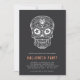Um convite para festas de Dia das Bruxas, uma criança assustadora, com uma ilustração intrincada do crânio de açúcar calavera. Personalize com os detalhes do seu partido abaixo.
