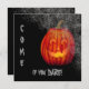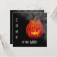 A frente deste convite para o Halloween tem um jack-o-lanterno cor de laranja brilhando de uma esquisita teia de aranha. O texto do lado e do fundo diz "VENHA se você se atreve!" na cinza. As imagens e o texto são colocados num fundo negro dramático. A parte de trás do convite tem quatro campos separados e muito espaço para as informações de sua parte personalizada. Só a quantidade certa de assustador e assustador! *O Clip art usado neste design é protegido por direitos autorais pela Encore Software, Inc., que permite o uso a seus licenciadores. Todos os direitos reservados.
