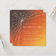 Uma elegante teia de aranha de diamante e estrelas contra um fundo solar laranja. Todo o texto é totalmente editável, para que você possa facilmente adicionar ou excluir texto e alterar o estilo/tamanho/cor/layout da fonte de acordo com as suas necessidades. Este design está disponível em outras cores, em diferentes estoques de cartão e também em acessórios de coordenação.