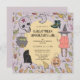 Bruxas e gatos pretos e caldeiros. Um convite de festa do Dia das Bruxas de uma criança fofa com itens de bruxas para praticar bruxaria. Folhas de outono fluindo ao redor da cena.