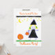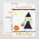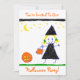 Festa de Halloween para crianças! Convites personalizáveis de Festa de Halloween. Adicione seus próprios detalhes em minutos à frente e atrás deste convite de Halloween! Uma criança bonita desenhando de uma menina vestida de bruxa com seu truque ou bolsa. Lua e estrelas estão no céu e há uma abóbora entalhada ao seu lado. Cada convite vem com um envelope. Excelente para a Festa de Halloween!