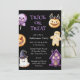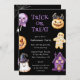 Convide pequenos monstros para uma celebração manchata com o nosso convite para o Dia das Bruxas de Spooky-Sweet. Colocada sobre fundo escuro, esta design brincalhona apresenta uma abóbora mau, um morcego assustador, um fantasma fofo, uma múmia assustadora, e doce de Halloween. As palavras "Trick or Tratat" são escritas caprichosamente em uma fonte divertida, com o tema do Dia das Bruxas. Uma maneira perfeita de convidar seus filhos amigos para uma festa de Halloween assustadora. Prepare-se para uma comemoração inesquecível do Dia das Bruxas cheia de risos e doces galore!
