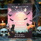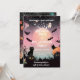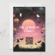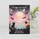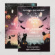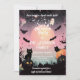 Convide seus convidados para uma festa assustadora do Dia das Bruxas com este cartão personalizado com gatos pretos, abóboras, fantasmas e uma lua rosa brilhante. Perfeito para uma comemoração amigável ou um evento caseiro assombrado, este design dá o tom perfeito para uma noite de truques e guloseimas.