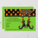 A bruxa do Halloween em estripadas e botas convida... com meias de bruxas engraçadas e botas em um fundo verde brilhante.. vem completa com envelopes brancos ... convites de festas de Ricaso algumas imagens com licença da CU delightful-doodles.com