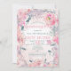 Modelo de convite de festas de aquecimento da casa chic Floral com de com cor d'água pincelada cor-de-rosa pintado com rosas de pénia esboçada com folhagem azul oceânica e bordas floridas sobre um fundo rosa pálido lavado. — O convite é adequado para festas românticas de turma ou jardim de primavera ou de verão ao ar livre.