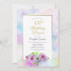 Um convite de festas de 100 anos floral, azul e cor-de-rosa, com borda dourada e pintada de aquarela pastel.