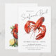 Uma festa de janto de marisco no quintal é a maneira perfeita de juntar pessoas para uma noite divertida, casual e deliciosa. Imaginem uma longa mesa de piquenique coberta por uma toalha de mesa vibrante e controlada, com um espantoso conjunto de frutos do mar frescos, vegetais vibrantes e ervas aromáticas espalhando-se pela superfície. O sol se põe atrás de você, lançando um brilho quente sobre a cena enquanto amigos e familiares se reúnem, animados para o banquete. Este convite contém um gráfico de lagosta vibrante, simples, na frente, com um balde de lagostas e cunhas de limão no verso. Personalize o modelo de texto simples com os detalhes do evento.