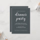 Convite de festas simples e chic janta na moda branco, caligrafia elegante de script e tipografia moderna sobre fundo negro. Basta adicionar os detalhes da sua parte de janto. Desenvolvido exclusivamente para você pelo Happy Dolphin Studio. Se precisar de ajuda ou produtos correspondentes, entre em contato conosco através do bate-papo da loja!