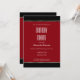 Um moderno e sofisticado convite de festas de aniversário vermelho e preto com texto branco e listras douradas e prateadas.