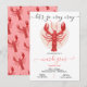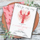 Convites de festa de lagostins modernos e funky. Apresenta um grande lagostim pronto para enlouquecer no Mardi Gras! Cores vermelho, laranja e branco.