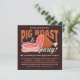 Preparando uma festa de leitão assado? Temos um convite para isso! Uma boa tipografia cerca uma ilustração de perna traseira com osso (ou porção de presunto) em fundo marrom. Modelos incluídos para você. Perfeito para grandes reuniões familiares, encontros familiares, festas de 4 de julho, festas de 'brinde e zombaria' de noivado, aniversários especiais e muito mais! Se precisar de ajuda com os modelos, envie-nos uma mensagem de bate-papo, respondemos diariamente.
