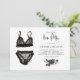 Tema da lingerie preta, convite de festas. Apresenta a ilustração aquosa da lingerie preta e flores pretas com caligrafia moderna. Personalize adicionando nomes, data, hora, local e outros detalhes do evento. Este convite à lingerie preta é perfeito para qualquer tema de galinha.