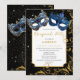 Prepare-se para celebrar um aniversário em estilo com uma glamourosa festa de mascarada! Este convite elegante apresenta máscaras azuis reais, espirais brilhantes de ouro e estrelas brilhantes para dar o tom a uma celebração memorável. Envie este convite aos seus amigos e entes queridos para se juntarem a vocês para celebrar um aniversário com uma festa glamourosa.