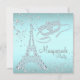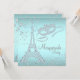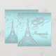 Festa de mascarada de Paris com Torre Eiffel de diamante e máscara de mascarada de diamante em um lindo fundo azul turquesa e diamante.. Este convite de festa de mascarada azul turquesa elegante é facilmente personalizado para o seu evento, basta adicionar os detalhes do evento, estilo de fonte, tamanho e cor da fonte e texto. Este é um design impresso sem diamantes reais, glitter, etc. Você pode remover o fundo azul turquesa para adicionar sua própria cor de fundo.