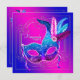 Belo convite de festas rosa-quente azul-real com mascarada azul-quente bonito, rosa-quente roxo roxo e máscara de pena azul-real em um lindo fundo azul-real e rosa-quente. Este elegante convite de festas roxo e azul-real e roxo é facilmente personalizado para o seu evento simplesmente adicionando detalhes do seu evento, estilo de fonte, tamanho de fonte e cor e texto. Esta é uma design impressa sem brilho real, penas, joias, etc.