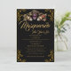 Convite de festas preto e mascarada de ouro com máscaras coloridas elegantes e douradas sobre fundo preto. Este elegante convite de festas preto e mascarada dourado é facilmente personalizado para o seu evento adicionando detalhes do evento, estilo de fonte, tamanho de fonte e texto. Este convite pode ser usado para um casamento no inverno ou outra festa divertida.