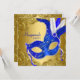 Convites de festa de máscaras azul real e dourado elegantes. Este convite de festa de máscaras azul real é facilmente personalizado para o seu evento, simplesmente começando a adicionar os detalhes do evento, estilo de letra, tamanho e cor da letra e redação.