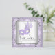 Convite de festa de máscaras sweet 16 lavanda com máscara de pena lavanda roxa bonita em um fundo de redemoinho lindo. Você pode personalizar facilmente este convite de festa de máscaras lavanda para o seu evento, simplesmente adicionando seus detalhes no estilo de letra, cor e texto de sua escolha.