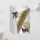 Convite de festa de máscaras Sweet 16 dourado e prateado.