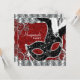 Máscara de penas prateadas, vermelhas e pretas, convite para baile de máscaras preto e branco. Este convite de baile de máscaras preto e vermelho é facilmente personalizado para o seu evento, bastando escolher o botão "Personalize!" para começar a adicionar os detalhes do evento, estilo de letra, tamanho e cor da letra e texto. Por favor, note que todos os cartões e convites que você encontrará na Zazzle são gráficos impressos sem joias, laços, relevos, ou peças ou partes adicionadas.