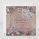 Festa de máscaras Vintage Paris com Torre Eiffel de diamantes e máscara de diamantes em um fundo floral e de renda vintage. Este convite de festa de máscaras de Paris é facilmente personalizado para o seu evento, basta adicionar os detalhes do evento, estilo de fonte, tamanho e cor da fonte e texto. Este é um design impresso sem diamantes reais, lantejoulas, etc. Você pode remover o fundo vintage para adicionar sua própria cor de fundo.