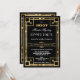 Personalize facilmente este convite de festa de mistério de assassinato vintage art déco, basta pressionar o botão personalizar para reorganizar e formatar o estilo e a posição do texto. Apresenta uma moldura art déco elegante e esquema de cores preto, branco e dourado. Itens correspondentes disponíveis na loja! (c) The Happy Cat Studio.