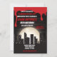 O convite incrível é para uma festa de mistério de assassinato. Tem o design de uma silhueta da paisagem urbana e sangue pingando no cartão. Ao fundo há lua cheia e nuvens vermelhas e brancas. Isso pode ser usado para qualquer tipo de festa de mistério de assassinato.
