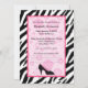 Convites Festa de Moda Trendy Zebra Girly Calçados Rosa
