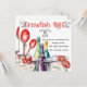 Personalize esse Convite de festas festivo de lagosta que apresenta lama, potes, colheres e um toque de Mardi Gras jogado. Cada pote a ferver tem uma etiqueta rústica com milho, insetos e batata. Duas colheres vermelhas, uma tombada em miçangas festivas, também aparecem ao lado de garrafas de vinho vibrantes. Personalize as informações da sua parte, data, local e RSVP para os seus convidados. Altere a fonte, o estilo da fonte e a cor, conforme necessário. Diverte-te incríveis na tua Manhã de Mudbug! Aproveite!
