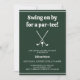 Celebrar o "Último Balanço Antes do Anel" do noivo com nosso na moda Golf Bachelor Party! Apresenta o texto "Swing on for a par!". Esta design de tendências apresenta um esquema de cor verde-chic, completo com um clássico tênis de golfe e motif do clube de golfe. Perfeito para entusiastas de golfe que querem acabar com as festividades no estilo. Prepare-se para um dia de diversão e risos no verde enquanto você honra os últimos dias de singelo do noivo. Não perca esse convite para dar um pontapé na despedida de solteiro de uma forma memorável! Peça agora e prepare-se para acertar os links com seus amigos favoritos de golfe.