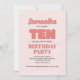 Celebre seu grande dia com o décimo convite de aniversário desta garota! Apresentando uma tipografia cor-de-rosa "dez", um padrão floral fofo, e um simples modelo, este design é perfeito para uma celebração moderna e minimalista. O guião caprichoso da caligrafia acrescenta um toque lúgubre, enquanto as elegantes flores chic trazem uma vibração na moda. Personalize este convite divertido e encantador hoje para uma comemoração memorável de aniversário!