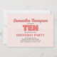 Celebre seu grande dia com o décimo convite de aniversário desta garota! Apresentando uma tipografia cor-de-rosa "dez", um padrão floral fofo, e um simples modelo, este design é perfeito para uma celebração moderna e minimalista. O guião caprichoso da caligrafia acrescenta um toque lúgubre, enquanto as elegantes flores chic trazem uma vibração na moda. Personalize este convite divertido e encantador hoje para uma comemoração memorável de aniversário!