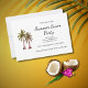 Convite de festas tropical de natação de verão, com palmeiras ilustrando design e letras pretas personalizáveis. Excelente para planejar sua festa de piscina piquenique com um tema de praia.