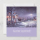 Natais vintages imaginam convites de festas de empresas ou famílias. Elegante, clássico e convidativo, perfeito para suas festas de férias. Uma rua pacífica de neve de inverno à noite, com pessoas, crianças, cavalos, bonecos de neve e luzes de rua fora de uma casa quente de família.