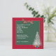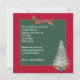 Árvore de Natal em fundo vermelho e verde com faixa.
