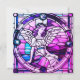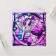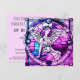 Este convite de festas de natal roxo e cor-de-rosa apresenta um anjo feito no estilo de uma janela de vidro manchado. O verso inclui todos os detalhes da festa em um fundo cor-de-rosa. O convite sazonal perfeito para todos os seus encontros, seja em casa, no local de contratação ou na igreja. Este design contém IA.