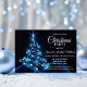 Convites de festas de Natal Modernos personalizados em cores azul e branca. Fundo em luzes cintilantes e neve, flocos de neve e árvore de Natal. Modelo editável - simplesmente adicione seu texto. Todo texto pode ser alterado fonte, cor e tamanho. Perfeito para festa em casa, festas de escritório, festa de janto de férias ou qualquer outra ocasião de inverno.