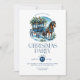 Esta festa de Natal traz uma bela tipografia de Natal retrô com um cavalo e uma carruagem com decoração de Natal azul e dourado. Convite para festa romântica.