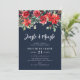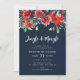Este design apresenta detalhes florais de cores aquáticas de inverno e cor azul marinho. Convite de festas de Natal.