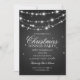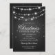 Corrente espumante elegante (luzes de corda) e Starry Winter Sky no Black Christmas Janta Convite de festas modelo. Imprima seus amigos com este design de convite sofisticado e elegante.