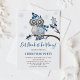 Convide convidados para a sua Festa de Natal com este convite de férias de coruja personalizável. Ele apresenta uma coruja azul adorável com um cachecol, chapéu de Papai Noel e sotaque com floco de neve. Personalize adicionando os detalhes do evento. Este Convite de festas de Natal personalizado está disponível em outras cores e estoque de cartão.