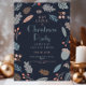 Um charmoso convite de festas de Natal azul escuro, com uma festiva coroa botânica de bolotas, pinecones, bagas e folhas de inverno. Este design moderno e na moda é perfeito para convidar hóspedes a uma celebração de feriado aconchegante e elegante. Personalize com os detalhes do seu partido e prepare-se para espalhar alegria festiva!