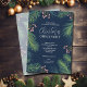Uma bela borda de agulhas de pinho e bagas sotaque suas informações de festas em letras chic em convites para festas de Natal marinho azul. CORRESPONDENDO a itens na nossa loja.
