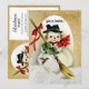 Este convite com design antigo é perfeito para uma festa de Natal ou uma casa aberta de férias. O design apresenta uma paisagem de inverno com neve caindo e um homem de neve antigo com uma borda de brilho dourado. A parte traseira do convite é onde você irá personalizar este modelo com as informações da sua festa. A parte traseira é mostrada, há um homem de neve antigo com brilho dourado na frente, além das palavras "você está convidado"