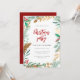 Prepare-se para uma festa de Natal alegre com nosso convite festivo. Uma coloração aquosa da folhagem natalícia, completa com bagas ocas e ramos falsos de folhas de ouro, acrescenta um toque elegante. "Festa de Natal" é lindamente escrita em vermelho, enquanto seus detalhes de festas são apresentados em uma sofisticada tipografia sans-serif.