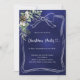 Para uma festa de Natal com familiares e amigos. Decorado com um arco branco simples desenhado à mão, verde e um pinho. Personalize e adicione os detalhes. Festa de Natal de coração. Um fundo azul marinho, incolor.