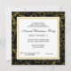 Este Convite de festas de Natal corporativo apresenta um fundo negro com estrelas de ouro desbotadas. Uma caixa branca com borda dourada contém texto personalizável para que você adicione seu convite profissional de evento de Natal.
