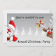 Festa de Natal bonita convida com Papais noeis de desenho animado e uma rena, sobre um fundo de cinza com árvores brancas de Natal.